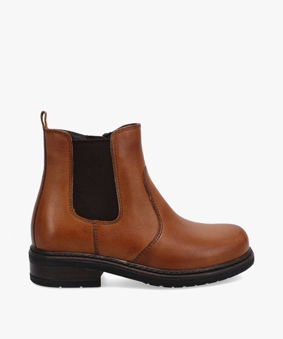 Boots fille style Chelsea unies dessus cuir - Tanéo marron