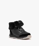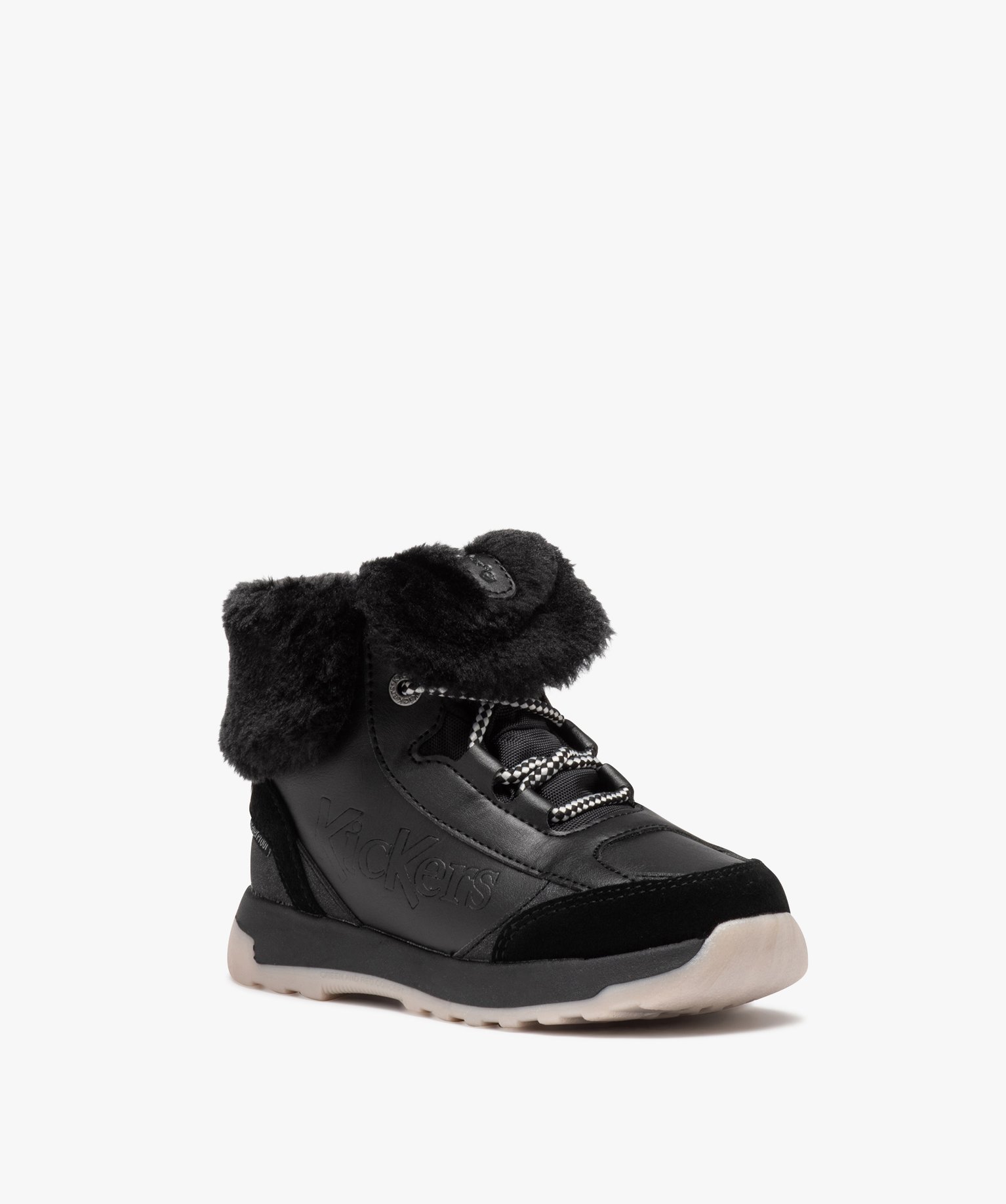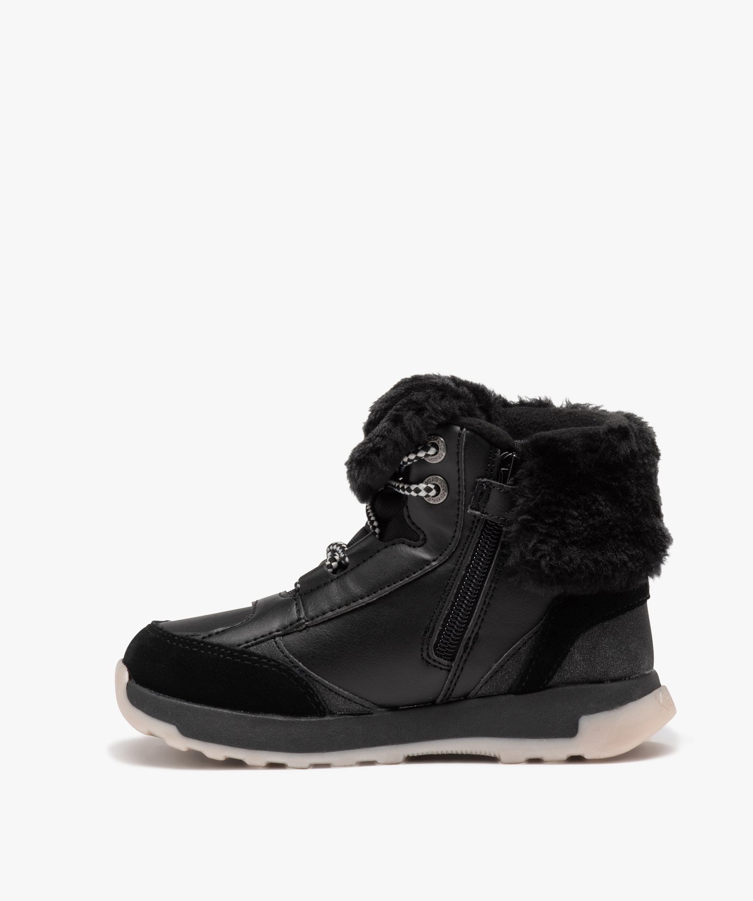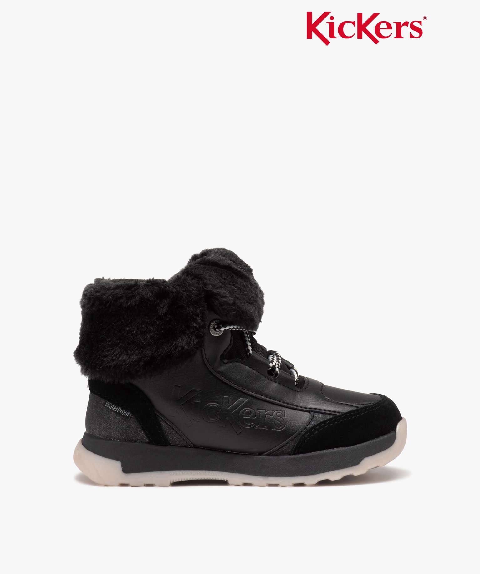 Pour garder les petits pieds bien au chaud, ces boots pour fille sont idéales pour la saison automne-hiver. Avec un intérieur tout en textile, la fourrure imitation recouvre col et languette pour conserver la chaleur et apporter un maximum de confort. On aime ces boots unies contrastées par des lacets ronds bicolores 2 passants + 2 oeillets métallisés et la semelle crantée, rappelant les chaussures de montagne. Ces bottes Kickers se portent avec une robe sur collants ou un jean et un pull en laine. Fermeture à zip intérieur.