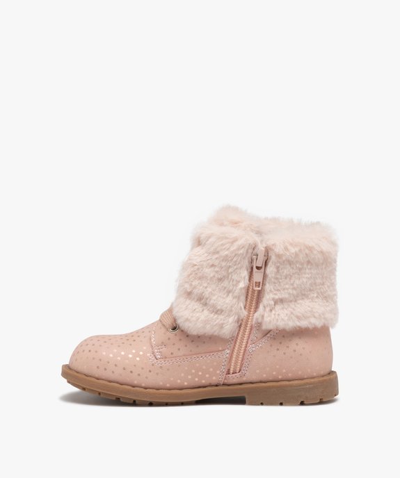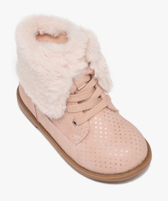 Boots fille unies à col retourné en peluche avec motif étoilé rose
