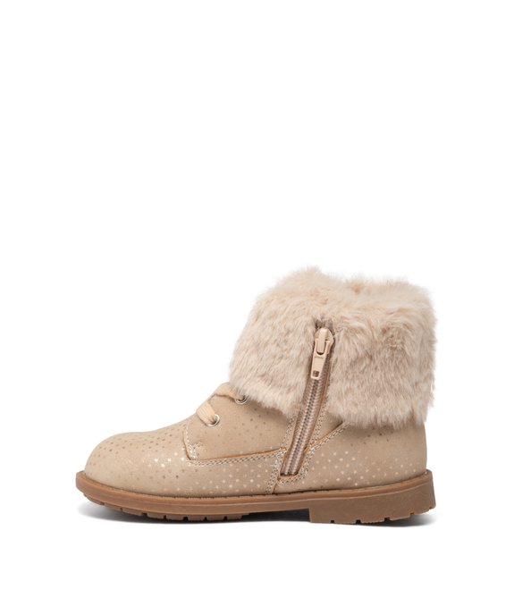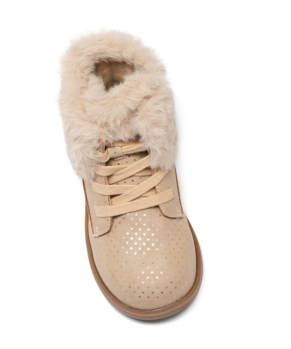 Boots fille unies à col retourné en peluche avec motif étoilé beige