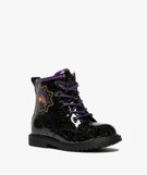 Boots fille vernies à paillettes avec zip intérieur et lacets Wish - Disney noir