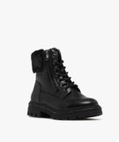 Ces bottines Tom Tailor mixent habilement le caractère fort des rangers avec la douceur de la fourrure imitation ! Entièrement fourrées et pourvues d'un col douillet, ces boots femme sont idéales pour l'hiver et vont inspirer plus d'un look confort ! Pratiques, les boots fourrées sont équipées de lacets pour un ajustement optimal et d'un zip sur le côté intérieur du pied pour faciliter l'enfilage. Le zip sur le côté extérieur est décoratif.