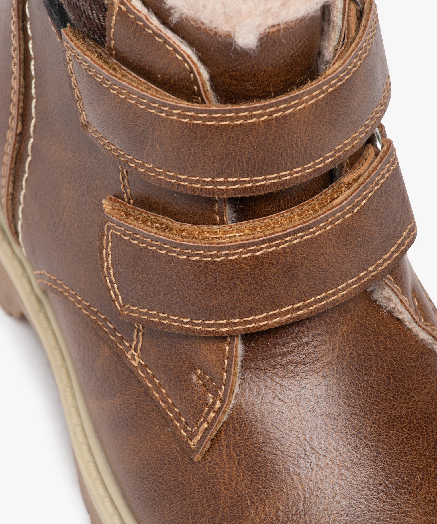 Boots fourrées chaudes à scratch et col fantaisie marron
