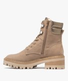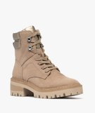 Ces bottines à lacets et en suédine s'équipent d'une épaisse semelle crantée. Col et languette sont matelassés et brillants, les passants en forme de diamants, des détails originaux qui transforment ce modèle de boots inspirées des chaussures de randonnée, en bottines fourrées féminines ! Vous pouvez les porter avec pantalons skinny, jupes et robes sur collants. Fermeture à zip intérieur.