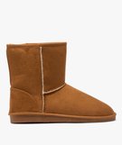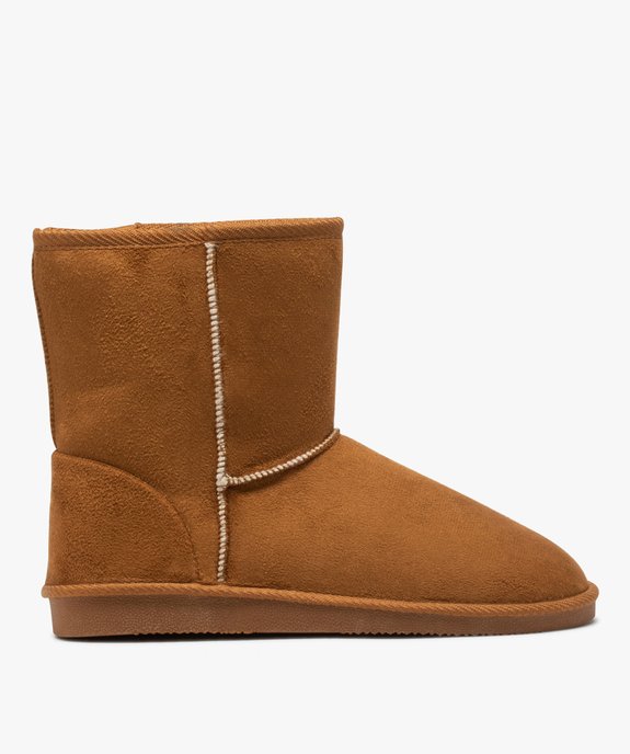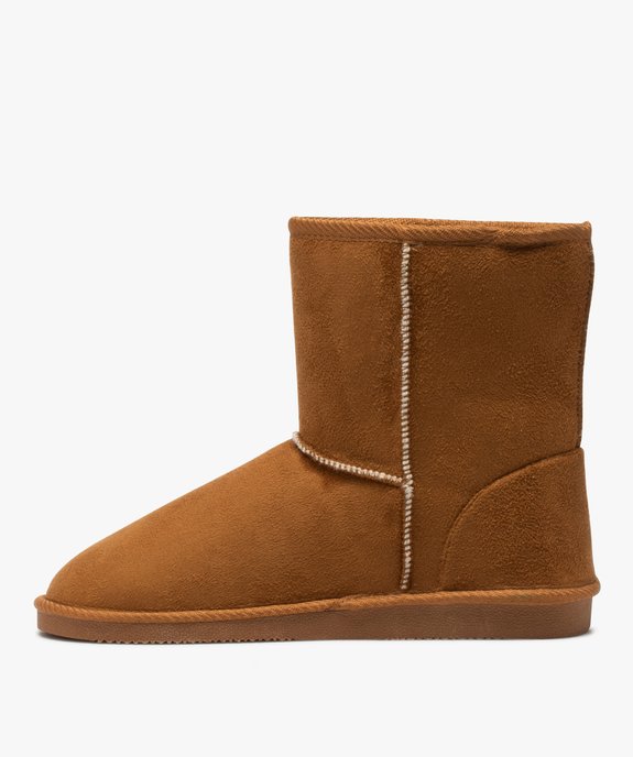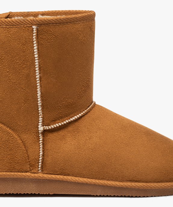 Boots fourrées femme à talon plat dessus suédine unie marron
