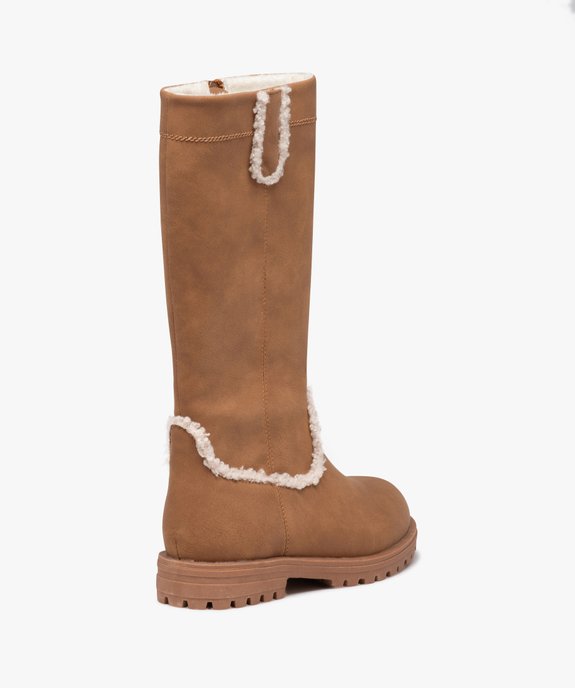 Nos stylistes ont sélectionné pour votre enfant des bottes fille élégantes, confortables et faciles à enfiler, idéales pour être portées avec ses looks de tous les jours. Retrouvez sur notre site e-commerce des bottes pour fille de la pointure 24 au 39 avec des modèles qui montent au-dessus de la cheville, à la limite des bottines fille, tels que les bottes à semelle crantée, hyper tendance dans les cours de récré ; des bottes hautes pour fille plus couvrantes, comme la botte cavalière chic et indémodable, à porter aussi bien avec une robe pour fille et des collants épais ou par-dessus un jean fille ; des bottes et bottines fourrées douillettes pour les températures les plus basses. Les bottes fourrées fille existent avec une simple doublure en fourrure imitation ou avec également un détail duveteux en haut de tige. Nos bottes d’hiver fille sont déclinées dans de nombreux coloris. Mais pour un max de polyvalence, adoptez sans hésiter des bottes fille noires : elles s'assortiront à toutes les tenues d'hiver de votre enfant.