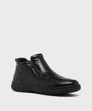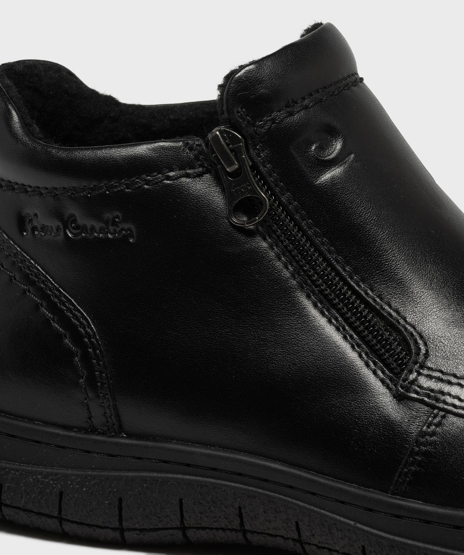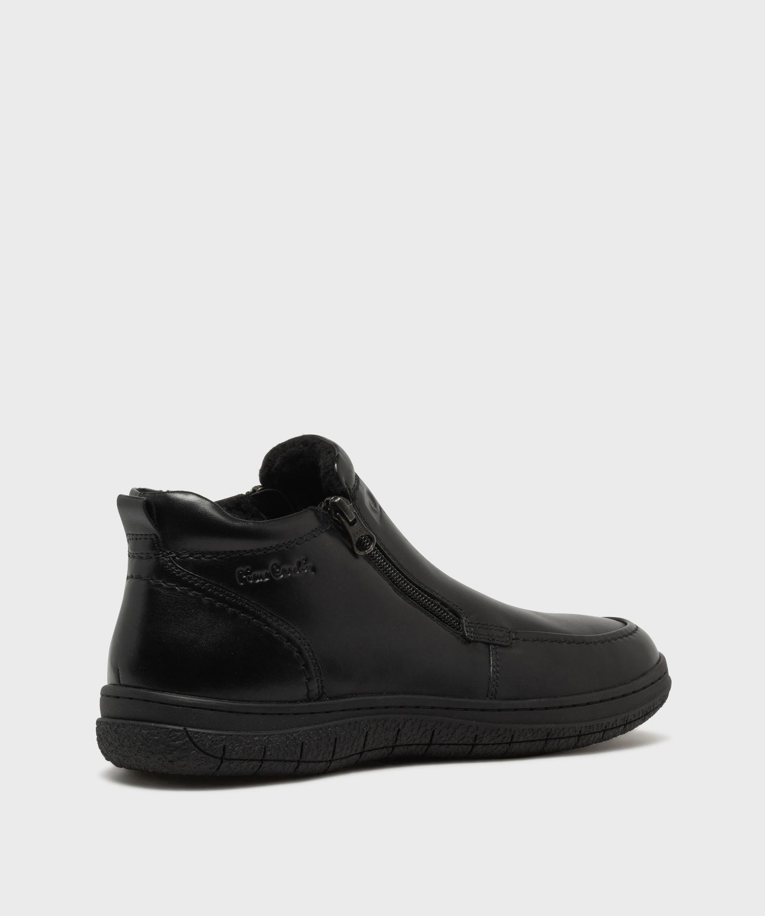 Boots fourrées zippées en cuir gamme confort homme - Pierre Cardin noir