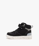 En quête de boots chaudes, faciles à assortir et que votre enfant voudra bien porter ? Misez sur ces boots garçon au look de baskets montantes ! Bien pensées, elles affichent une tige grainée, twistée par des perforations, des surpiqûres et un jeu de couleurs contrastantes. Côté confort, les enfants apprécieront la doublure douce en textile synthétique sherpa. Enfin, côté pratique, la fermeture à lacets élastiques et scratch fera l’unanimité. Des chaussures montantes à semelle intérieure moelleuse et semelle extérieure mouchetée. Tirette sur l'arrière.