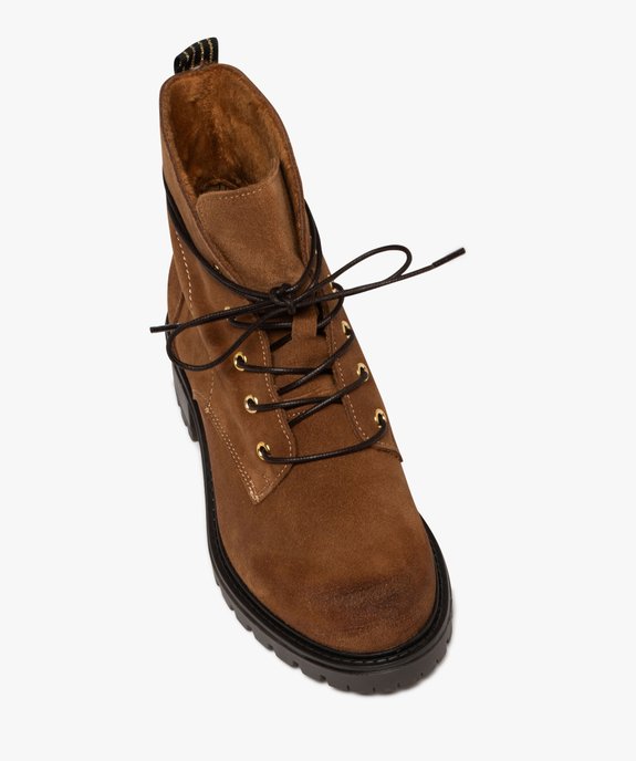 Boots fourrés en cuir à semelle crantée femme marron clair