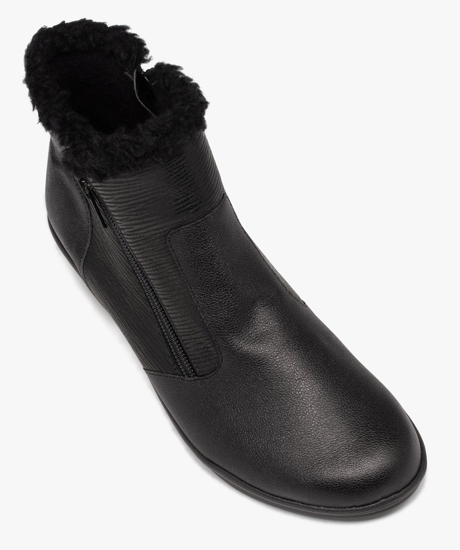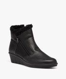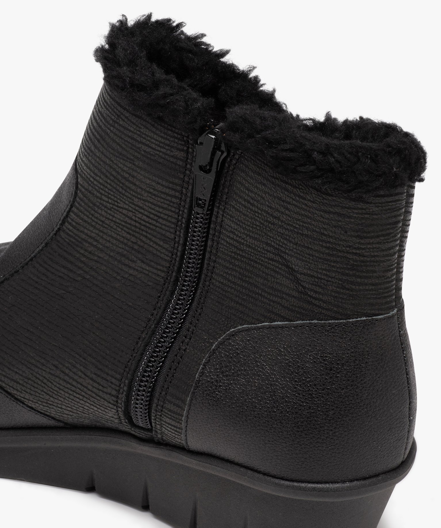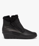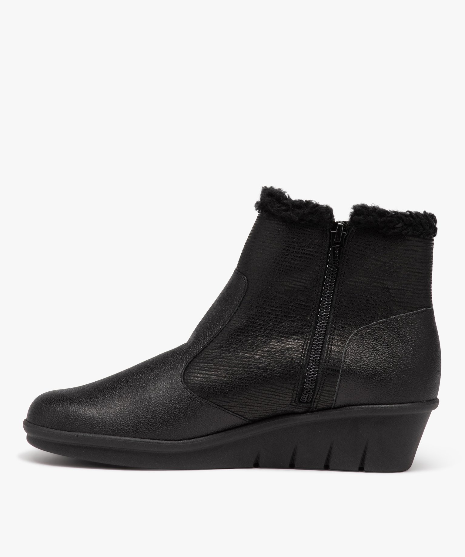 Boots fourrés femme unies à talon compensé et à double zip noir