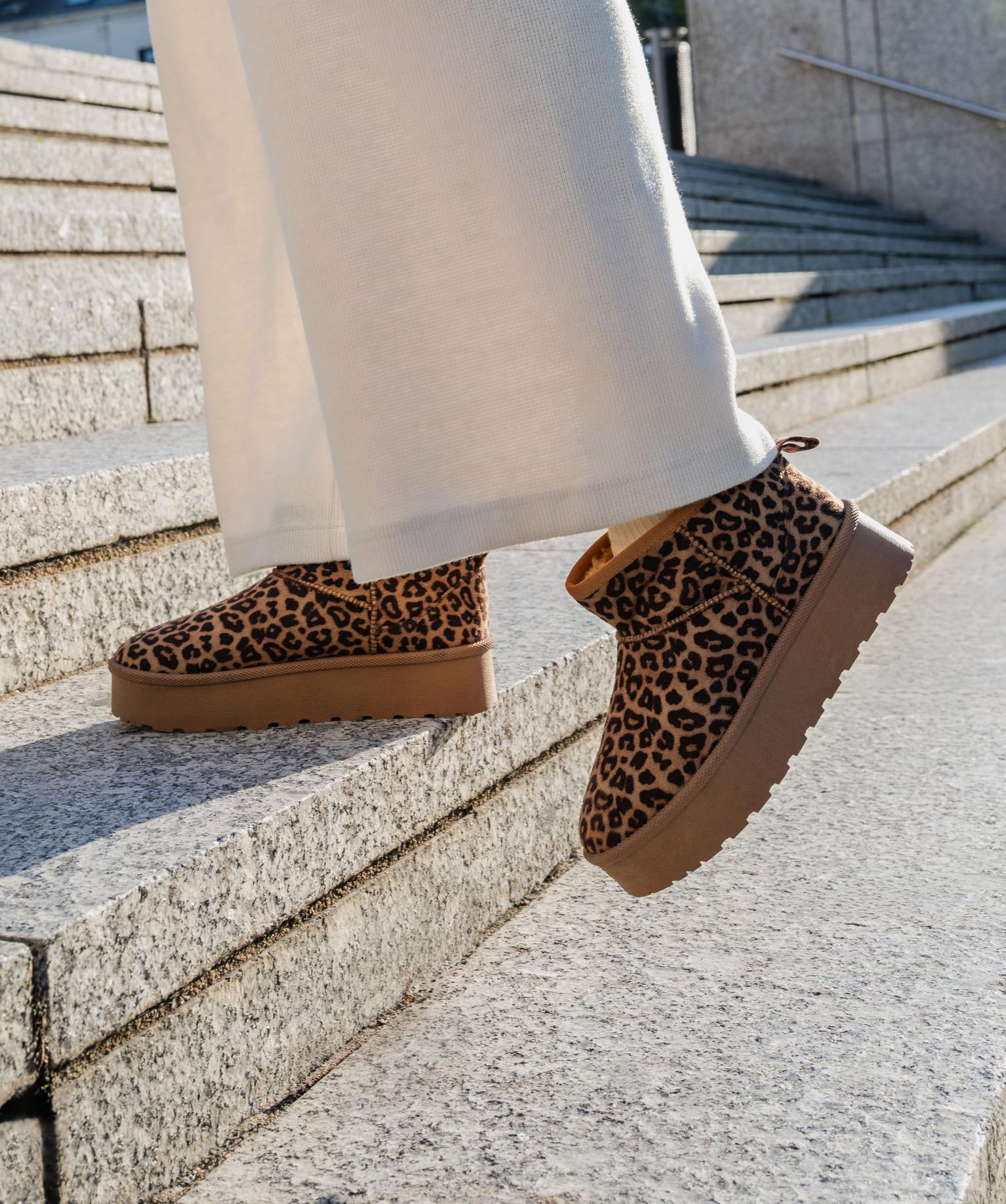 Boots fourrés motif léopard sur semelle plateforme femme - 5 Miles marron clair
