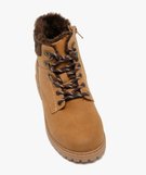 Boots garçon fourrées avec col matelassé à lacets bicolores et à zip marron