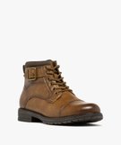 Boots home à lacets et à zip avec bout droit classique marron chine