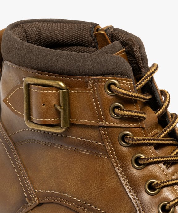 Un somptueux mélange de styles, ces boots homme optent pour un bout droit perforé très classique contracté par des lacets ronds bicolores et un col moussé rappelant les chaussures de randonnée. Casual ou sportswear, vous pouvez porter ces chaussures de ville comme bon vous semble : avec un jean et un sweat ou un pantalon chino et une chemise. Fermeture à lacets 6 oeillet métallisés + zip intérieur.
