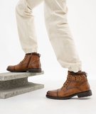 Boots home à lacets et à zip avec bout droit classique marron chine