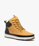 Vous êtes à la recherche de boots chaudes, étanches et faciles à porter au quotidien ? Ce modèle est fait pour vous ! Ces boots homme présentent une tige inspirée des boots workers, en matière synthétique suédée, avec un col contrastant en feutrine rembourrée et des lacets ronds bicolores. Beaux détails de finitions : doublure moelleuse en fourrure imitation et renfort en matière étanche entre la semelle intermédiaire et la tige. Des boots unies à porter en ville ou à la campagne, avec un jean regular et un pull épais.