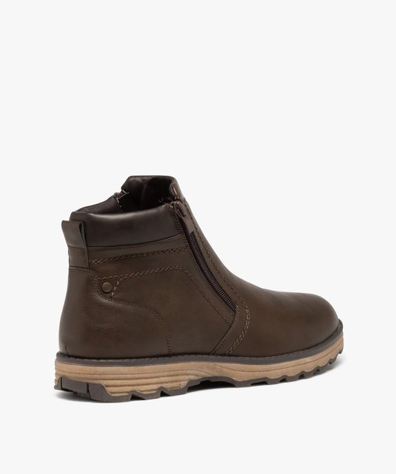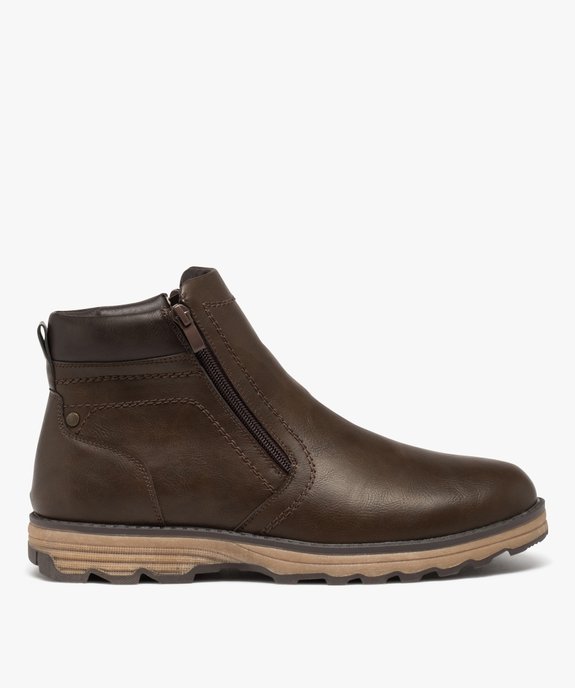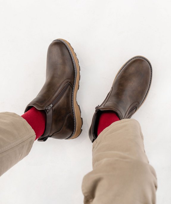 Boots homme confort unies à double zip et semelle crantée marron chine