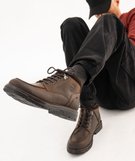 Boots homme dessus en cuir avec ourlets en relief et à bout rond marron chine