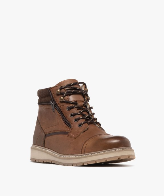 Boots homme fourrées sherpa avec dessus en cuir bout droit marron chine