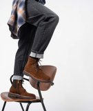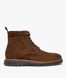 Boots homme unies dessus cuir à lacets - Tanéo marron chine