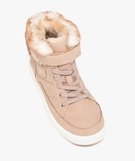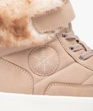 Grâce à ces boots doublés fourrure, les filles n’auront plus jamais froid aux pieds ! Des boots fille dont la tige matelassée est réalisée en matière lisse aspect nubuck et décorée d’un macaron orné d’un flocon de neige en fil pailleté. Ces boots chaudement doublées sont agrémentées d’un col en maille peluche qui apporte une touche réconfortante. Ils possèdent des lacets élastiques incrustés de fils pailletés et se ferment par une bride à scratch. Ils reposent sur une épaisse semelle contrastante offrant une bonne isolation. Les filles porteront ces bottines unies avec un jean slim et une doudoune matelassée.