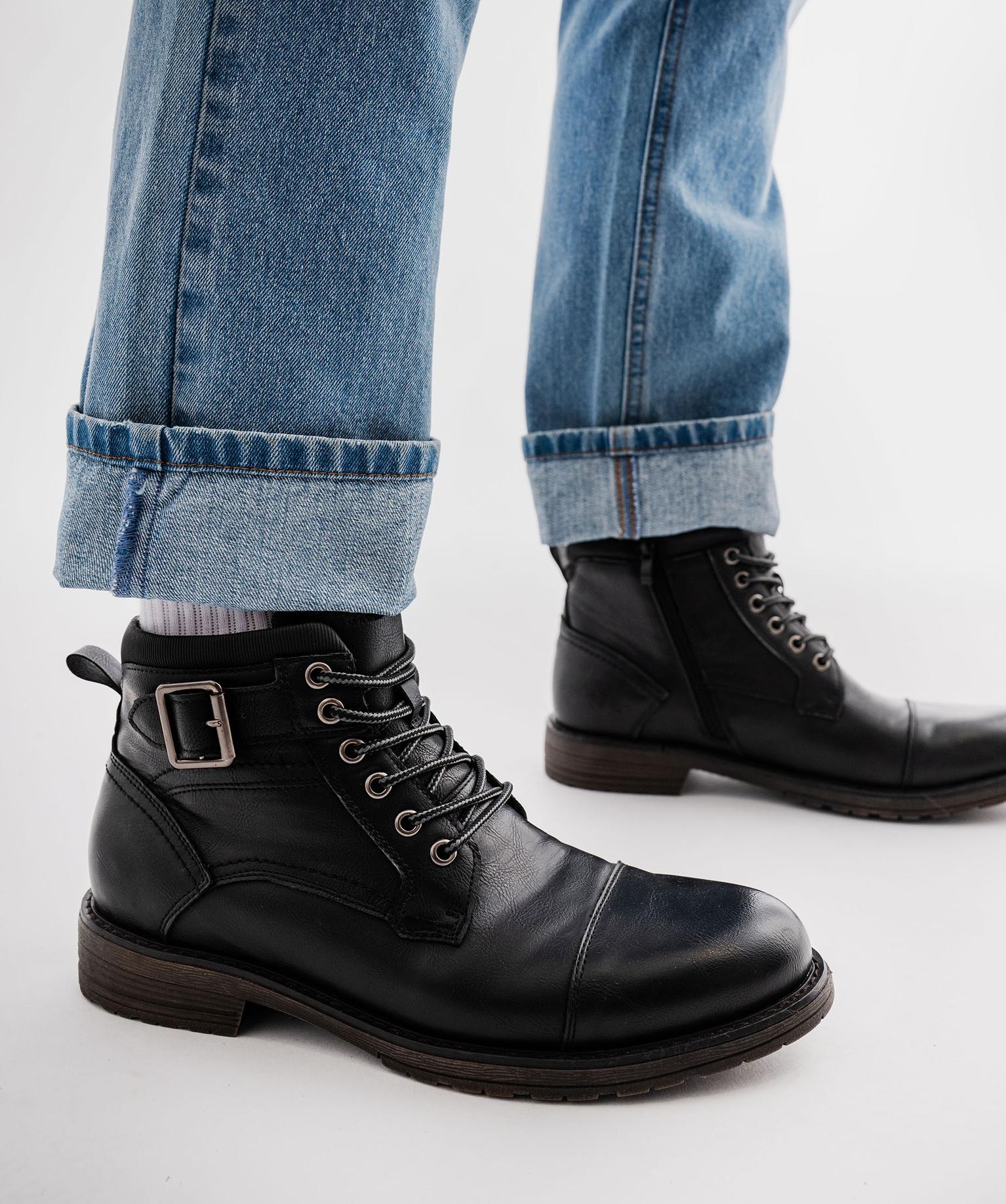 Boots mid-cut à semelle crantée, lacets et zip homme noir
