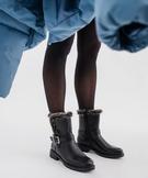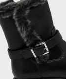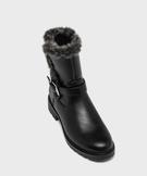 Ornées d'un ourlet en fourrure imitation, ces bottines femme réinventent les boots motardes ! Elles sont dotées d'un bout rond, d'une semelle crantée à talon plat, d'une boucle décorative à la cheville et d'une fermeture zippée pour un enfilage facile. Dédiées à votre confort, ces boots possèdent une semelle intérieure moussée et une doublure textile moelleuse.