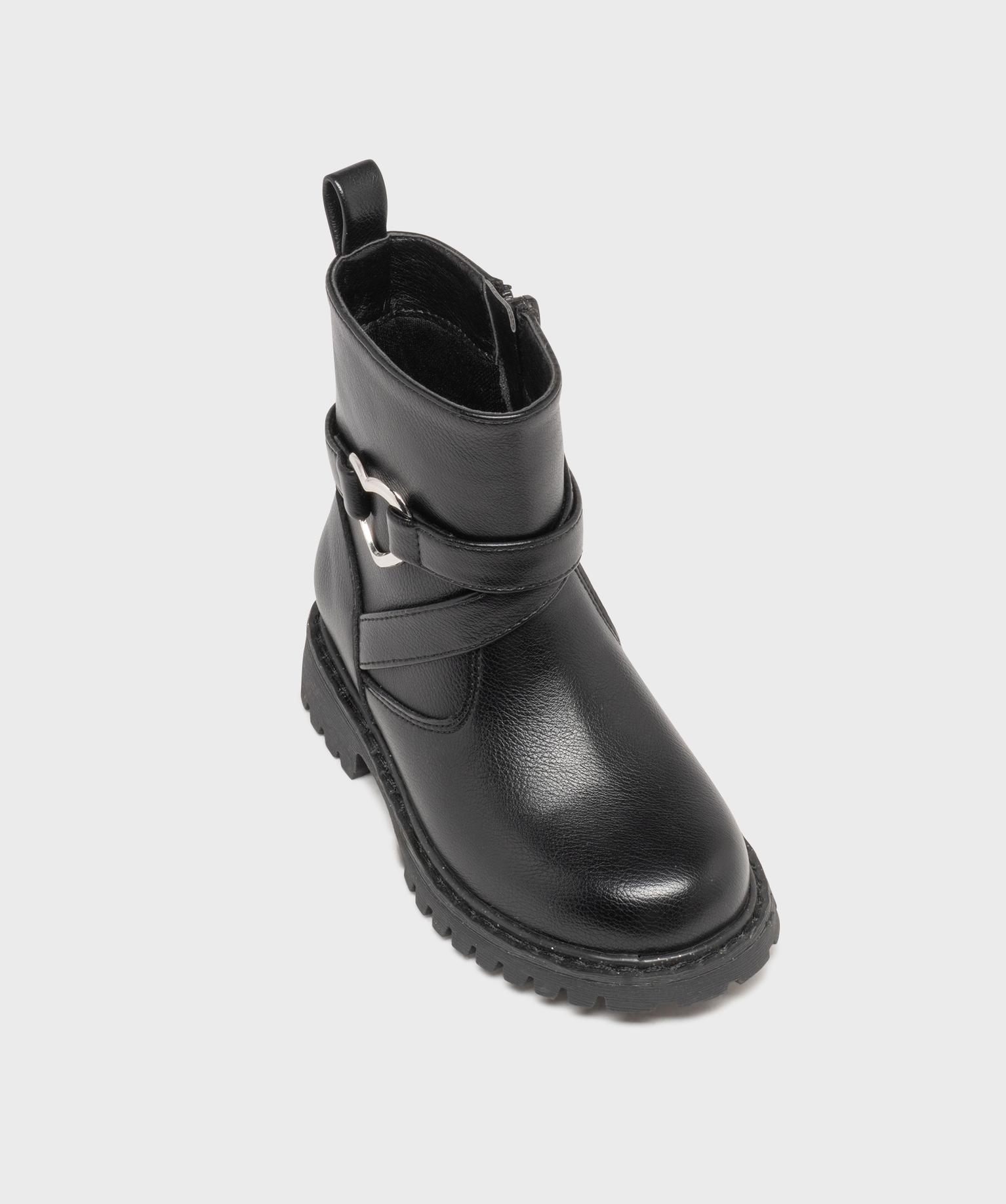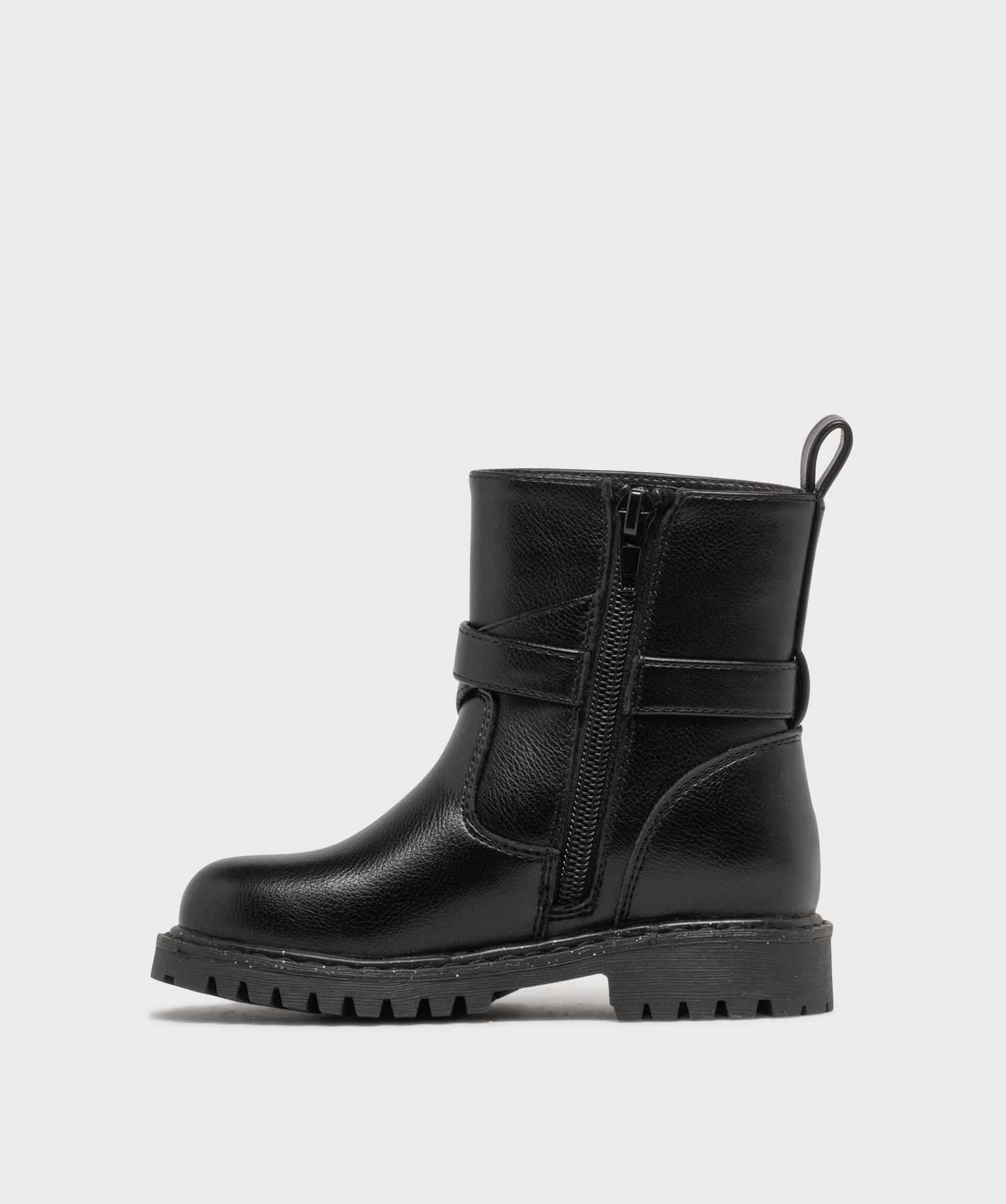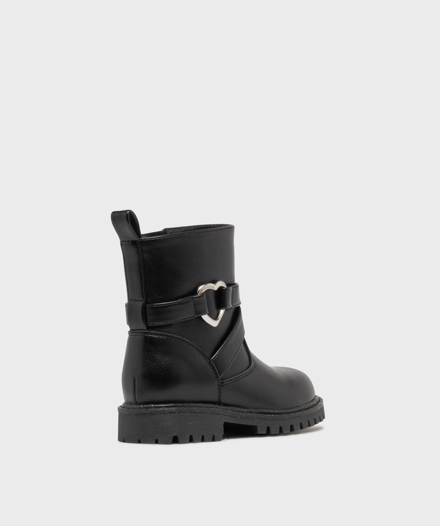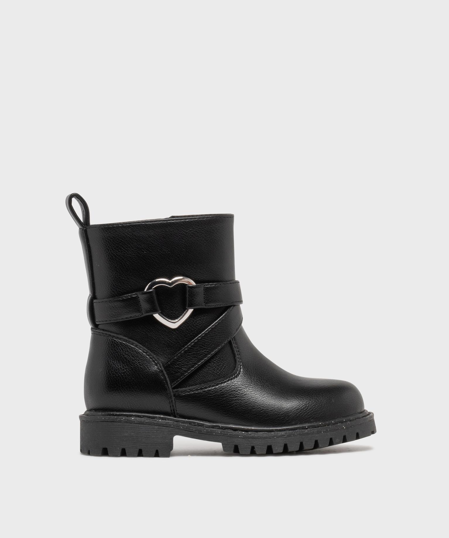 Laissez-vous charmer par des boots motardes à l'esprit girly ! Ces boots fille reprennent les codes de la botte de biker avec une tige montante, un bout rond, une semelle crantée et une boucle au niveau de la cheville... mais en forme de cœur ! On craque ! Ces chaussures pour fille en matière synthétique imitation cuir sont particulièrement confortables grâce à leur semelle intérieure moussée et leur doublure intérieure finement rembourrée. Zip sur le côté intérieur de la cheville. Tirette d'aide à l'enfilage.