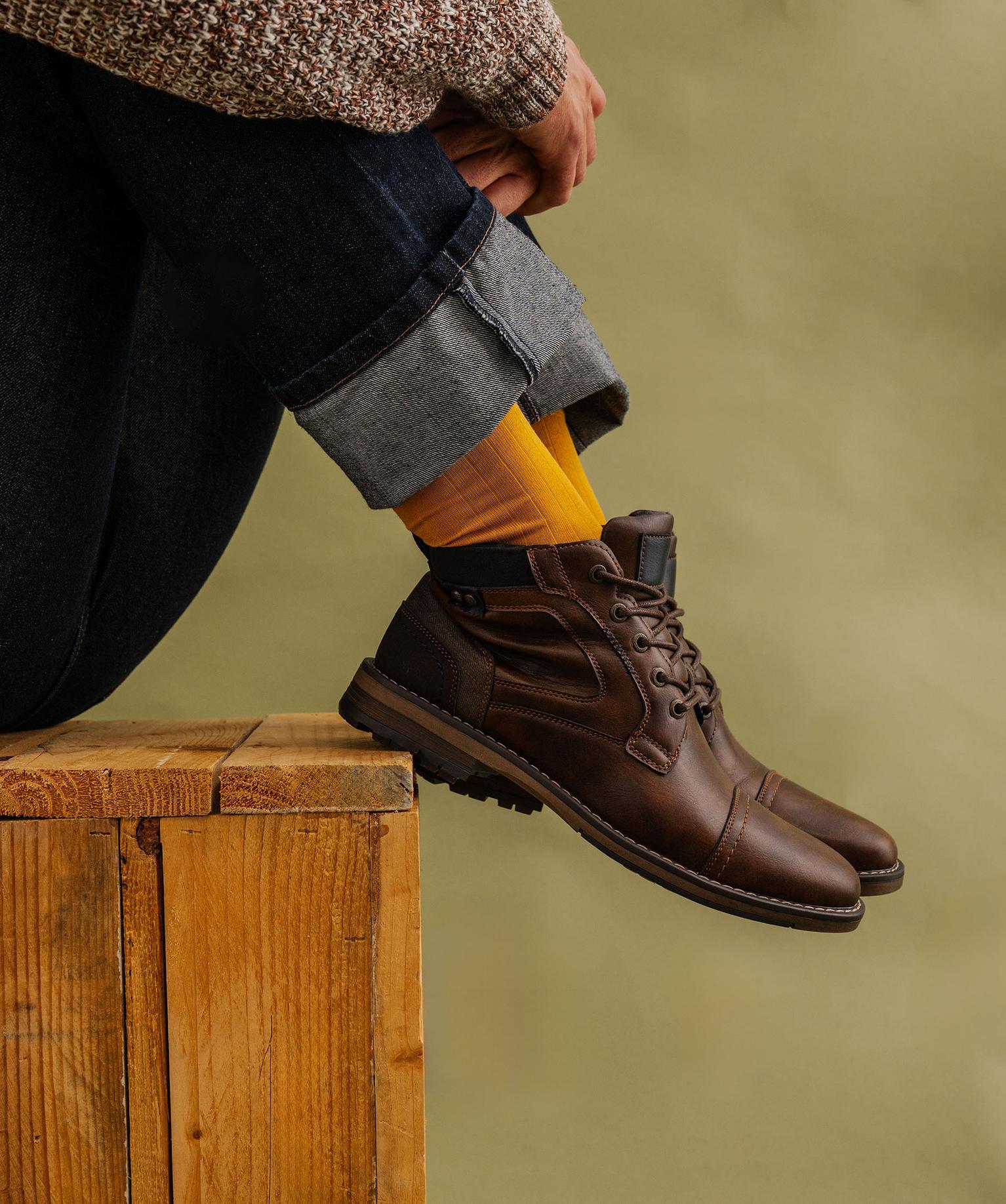 Craquez pour ces boots homme à lacets et zip, à la fois pratiques et stylées. Leur col moelleux assure un confort optimal. On adore la doublure intérieure à carreaux qui apporte une touche fantaisie discrète et authentique. Faciles à enfiler grâce à leur fermeture zippée sur le côté intérieur du pied, ces boots s’adaptent à tous les styles, du casual au plus urbain. Jeu d'empiècements texturés au col et sur l'arrière. Jeu de surpiqûres. Bout surpiqué. Semelle débordante surpiquée.