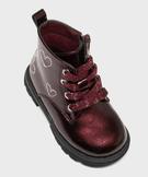 Boots vernies et zippées à lacets pailletées bébé fille rouge fonce