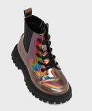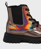 Ces boots vernies irisées sont parfaites pour les filles qui aiment afficher un look original et affirmé ! Leur finition brillante aux reflets changeants attire tous les regards. Leur silhouette façon Chelsea boots, avec élastique sur le côté du col, assure un bon maintien et un enfilage facile grâce au zip intérieur. Les gros lacets ronds apportent une touche tendance supplémentaire, et la semelle crantée épaisse complète ce modèle au style audacieux. Des boots fille parfaites pour affirmer sa personnalité avec confort.