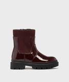 Boots vernis à col chaussette fille rouge fonce