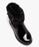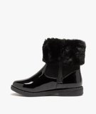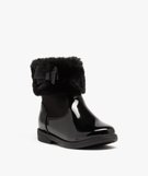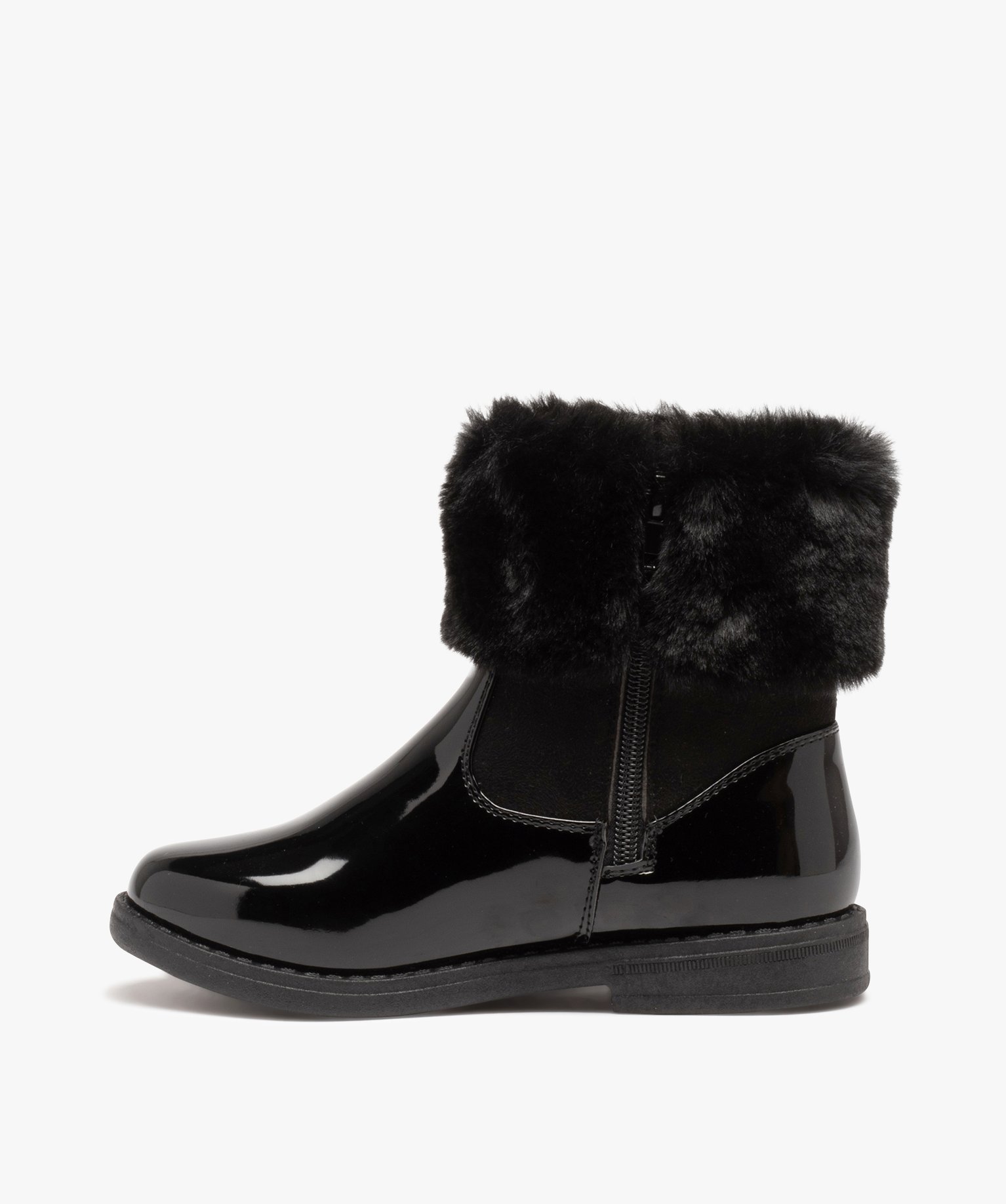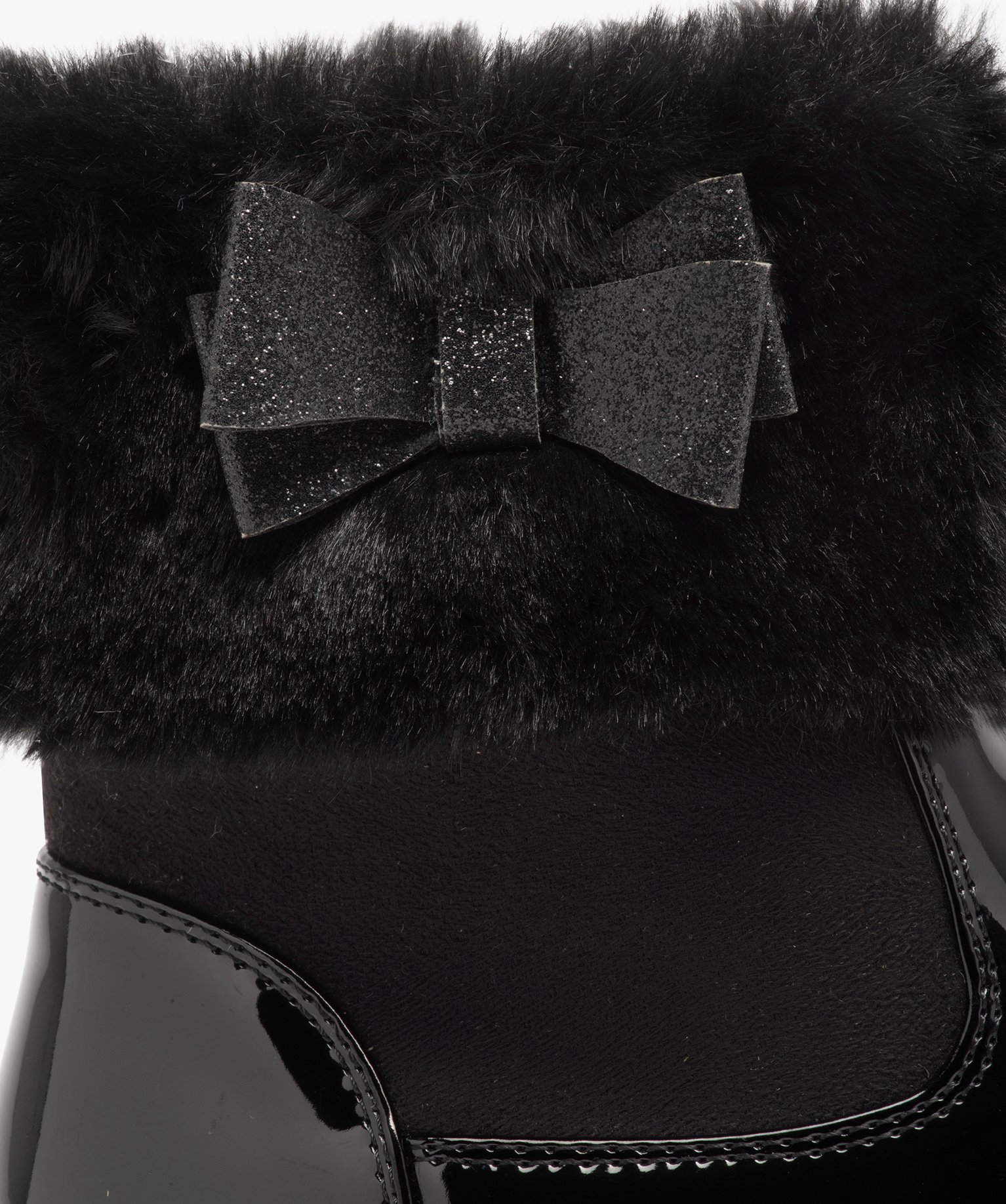 Assurez à votre petite fille une allure au top du glamour pour cet hiver grâce à ces boots vernis. Des bottines fille qui mixent les matières avec élégance : empiècement aspect velours sur la tige et large bande de peluche sur le haut de la tige. Un petit noeud scintillant ajoute une touche de brillance supplémentaire. Ces bottines vernies s’enfilent facilement grâce à un zip intérieur et repose sur une semelle antidérapante. Elles accompagneront les pantalons comme les robes pour un look ultra girly.
