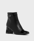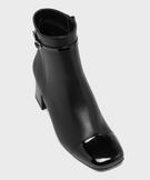 Ces bottines à talon trapèze incarnent élégance et féminité : elles mixent habilement matières mate et vernie pour une allure sophistiquée et sobre. Les boots sont dotées d'un bout carré verni, d'un talon verni et d'une petite bride à boucle décorative vernie. Intemporelles, ces boots sont idéales pour habiller vos jeans comme vos robes ou vos tailleurs. Fermeture à zip intérieur. Doublure textile moelleux.