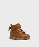 Boots zippées à lacets pailletées et nœud bébé fille marron