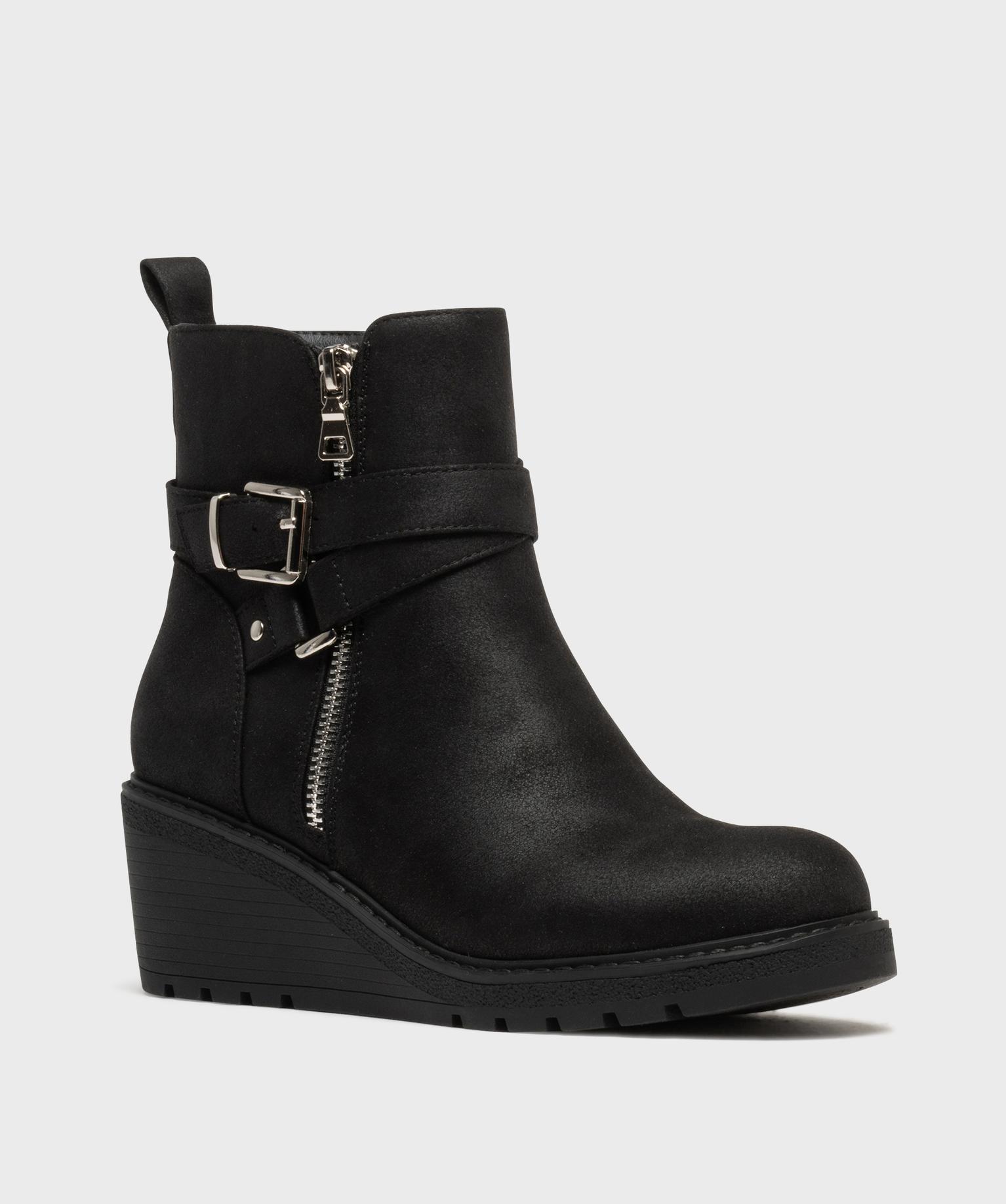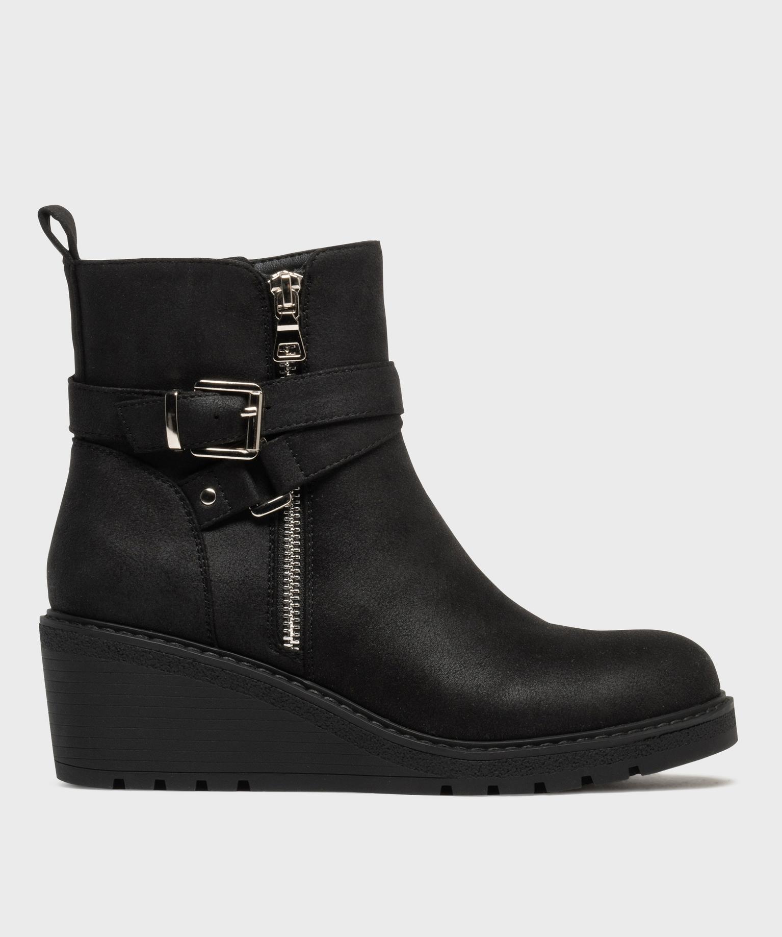 Boots zippées à talon compensé femme noir