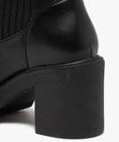 Ajoutez une touche mode à vos tenues du quotidien grâce à cette sublime paire de bottes en matière cuir imitation avec tige extensible en maille côtelée façon chaussettes. Ces bottes pour femme affichent un look résolument mode tout en offrant un grand confort. Elles reposent sur une épaisse semelle crantée avec talon bloc qui vous permet de gagner quelques centimètres. Idéales avec une mini-jupe ou avec une robe pull, ces bottes chaussettes apportent une touche d’inspiration rétro dans votre garde-robe.