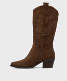 Bottes à talon cubain et bout pointu look santiag femme marron