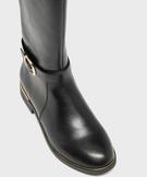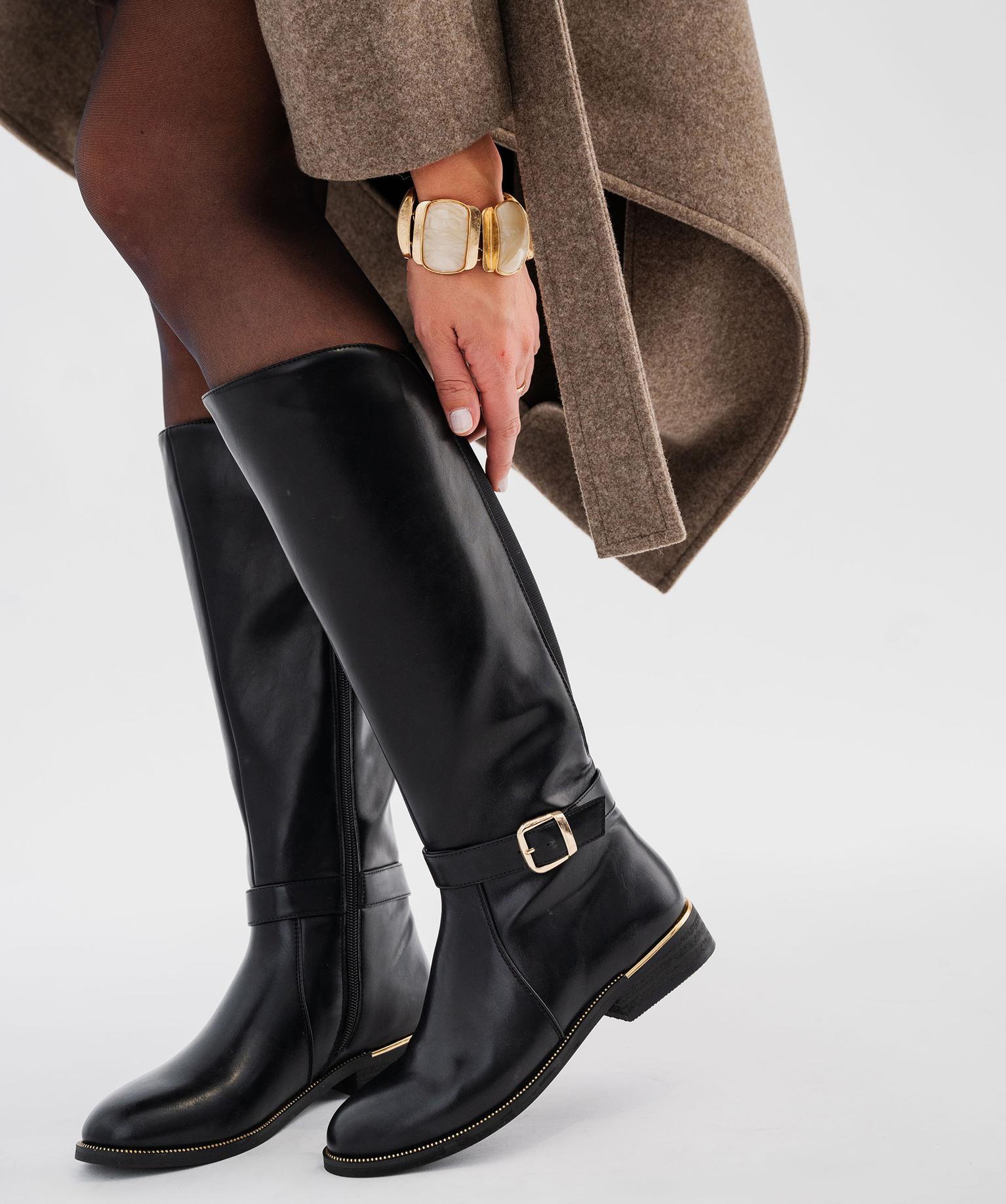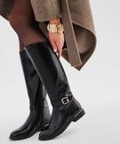 Largement inspirées des bottes cavalières, ces bottes Valentina Baldano affirment leur féminité à travers une délicate bride cheville fermée par une boucle et des détails métalliques sur le bord de la semelle. Ces bottes femme, conçues en cuir imitation, affichent une allure sobre et élégante avec bout arrondi et tige légèrement plus haute sur l’avant de la jambe. Un empiècement élastique sur l’arrière de la tige ajoute une touche de style et un confort optimal. Avec leur semelle débordante et leur talon plat, ces bottes sont un modèle incontournable pour celles qui cherchent à allier élégance intemporelle et confort au quotidien. Fermeture par zip intérieur.