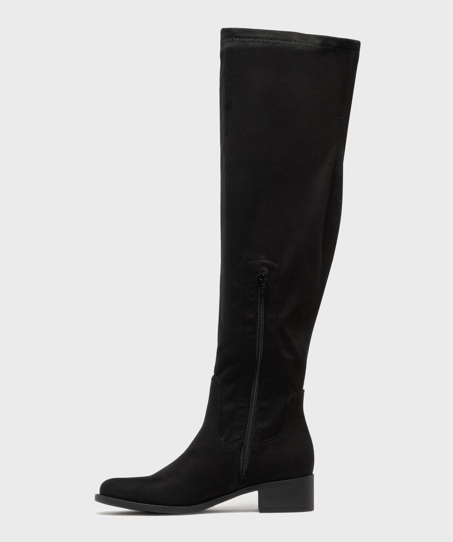 Craquez pour le style unique de ces bottes pour femme à mi-chemin entre les cuissardes, les bottes cavalières et les bottes chaussettes ! Des bottes à petit talon confectionnées en suédine souple et extensible. Ces jolies bottes épousent parfaitement la forme de votre mollet pour assurer une silhouette ultra féminine. Des bottes à enfiler qui possèdent un zip intérieur discret à mi-hauteur pour faciliter le chaussage.