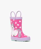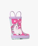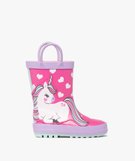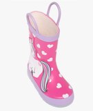 Bottes de pluie bébé fille licorne à petits coeurs et avec anses rose