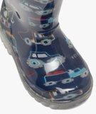 Montées sur une semelle épaisse translucide, crantée et qui s'illumine à chaque pas, votre garçon va adorer ces bottes de pluie bébé. Faciles à enfiler grâce aux anses arrondies et cloutées, ces bottes de pluie imprimées vont plaire pour les jours à la météo capricieuse. Pour un maximum de confort, la semelle intérieure est amovible et moussée. À porter avec une tenue imperméable.