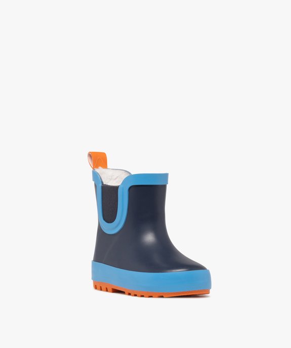 Bottes de pluie bébé garçon fourrées à semelle crantée bleu fonce