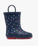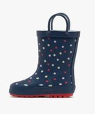 De jolis petits pois recouvrent ces jolies bottes de pluie bébé garçon. Des bottes fourrées avec une semelle intérieure moussée et amovible qui se portent dès que la météo affiche des températures fraîches et un temps capricieux. Pour les chausser facilement, deux anses sont dressées sur le dessus.