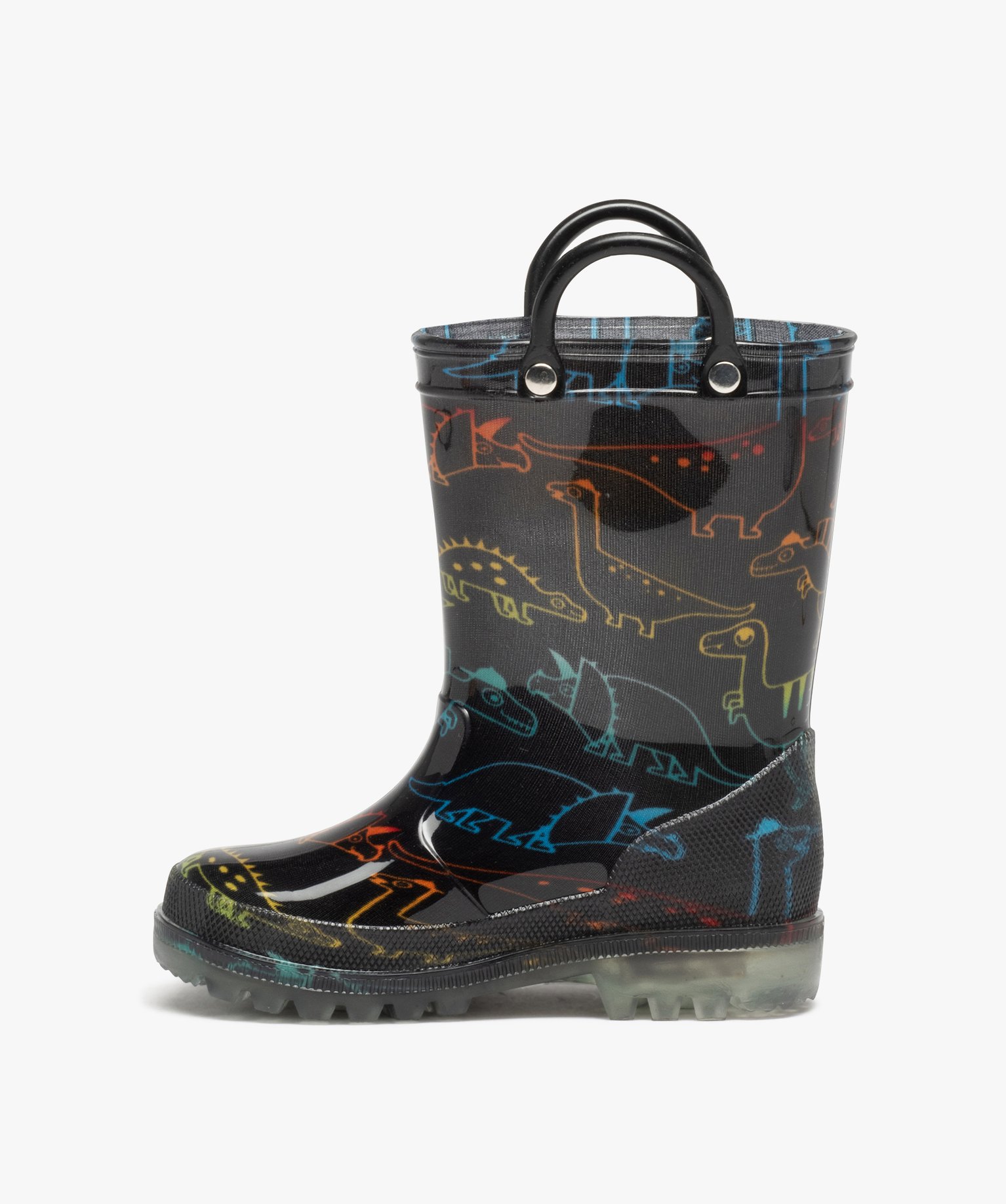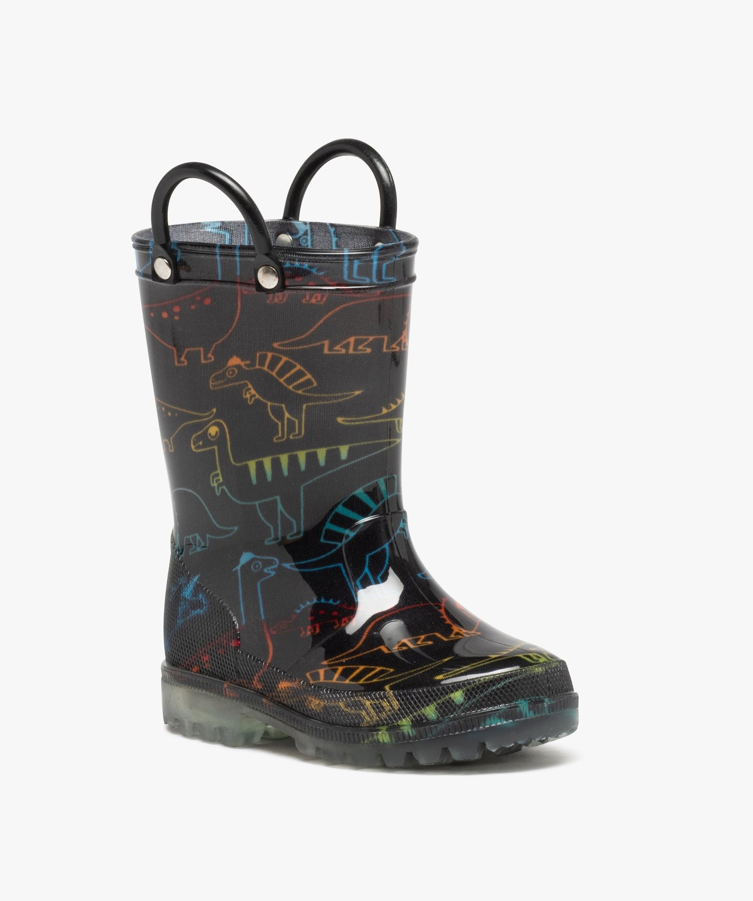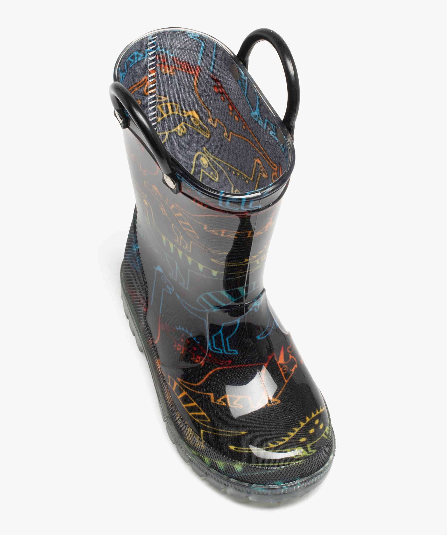 Bottes de pluie garçon à motifs dinosaures avec anses noir