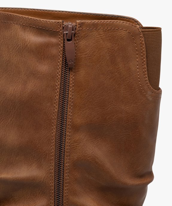 Bottes femme casual effet plissé avec brides fantaisie marron clair