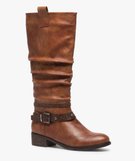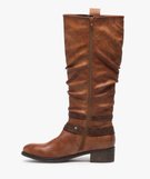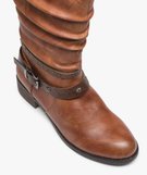 Bottes femme forme cavalière avec tige plissée et brides à la cheville marron