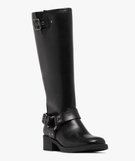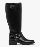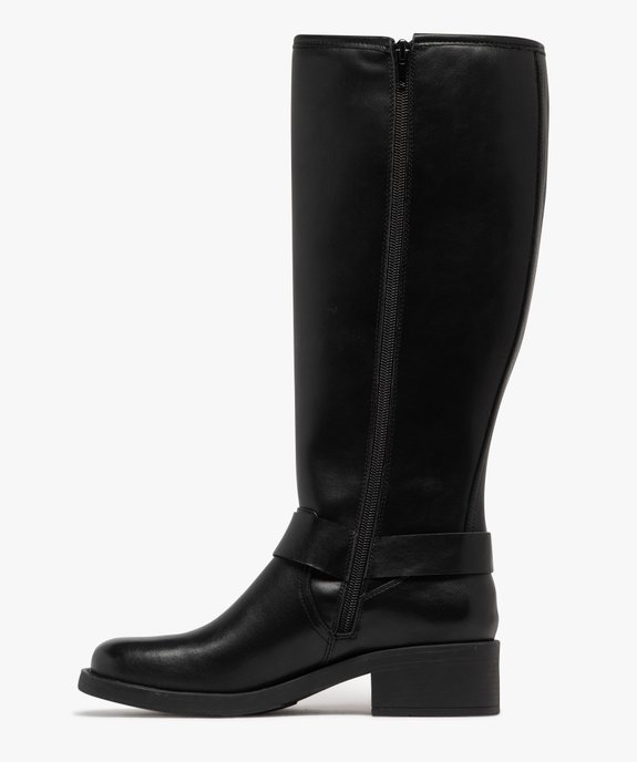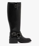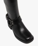 Bottes femme style cavalière à bout carré avec bride fantaisie noir