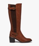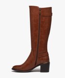Bottes femme unies à talon carré avec liseré métallisé marron