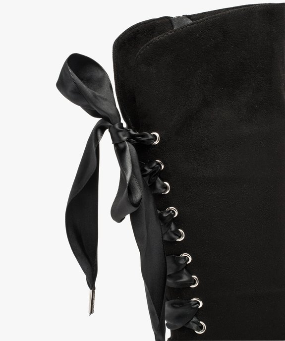 Look très girly et inspiration baroque pour ces élégantes bottes pour fille ! Design élancé, tige souple, laçage sur l’arrière avec œillets métalliques et ruban de satin : ces bottes pour fille sont pleines de caractère ! À porter avec un short en laine, un petit pull et une écharpe oversize. la doublure rembourrée en textile apportera un chaussant chaud et réconfortant au cœur de l'hiver. Fermeture zippée sur le côté intérieur du pied .
